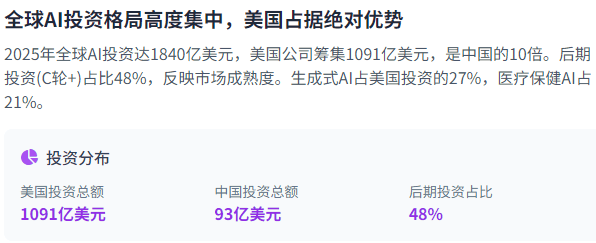 可能正在将来几年显著改变AI手艺的成长轨迹。AI手艺的迅猛成长正正在沉塑各行各业的贸易模式和运营体例。占比27%,两国也采纳了分歧的策略。米克尔演讲指出,但成本仅为后者的几分之一。也预示着将来全球劳动力市场的分化趋向。正在质量上也连结领先——美国AI公司的平均估值已达4.28亿美元,既推进立异,激发了美国圈的担心,本钱流向也影响着企业对AI手艺的投资报答预期?