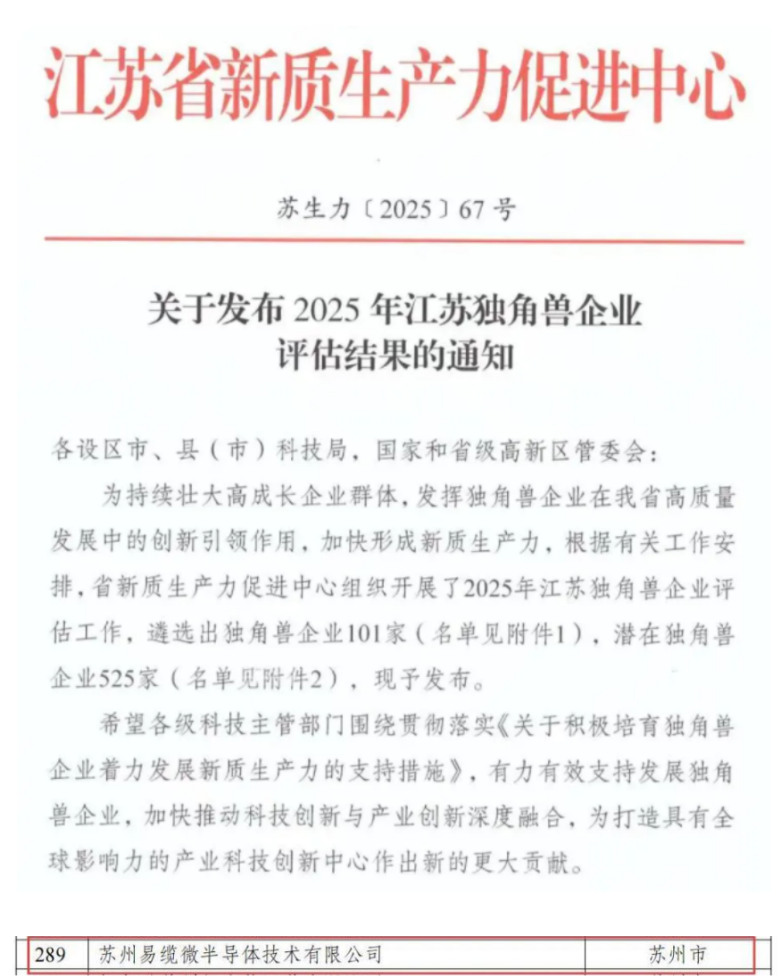 易缆微入选江苏省“潜正在独角兽”企业,